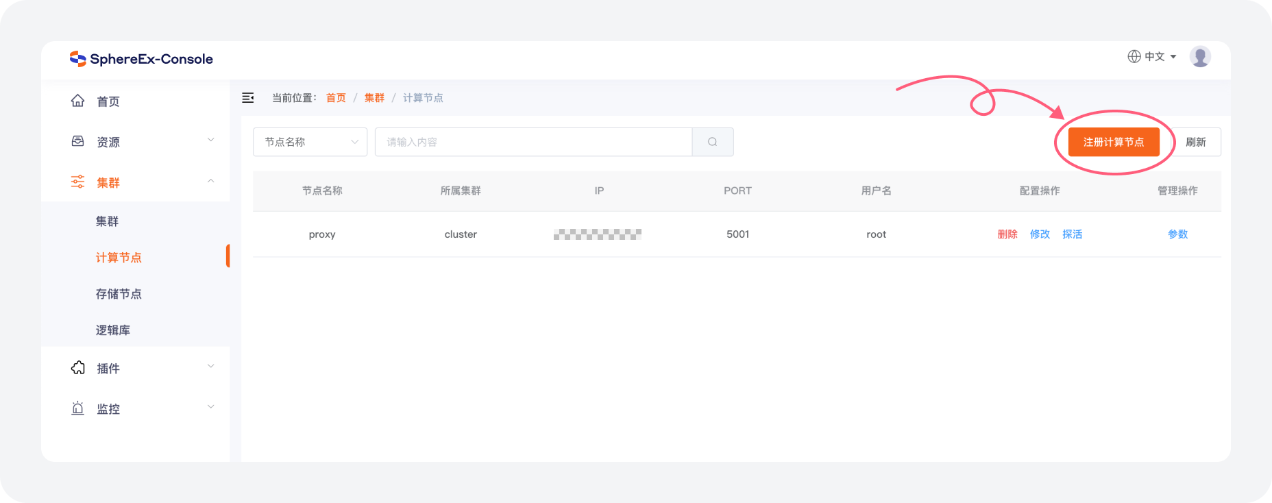 a. 在 集群 > 计算节点 菜单中点击 注册计算节点。