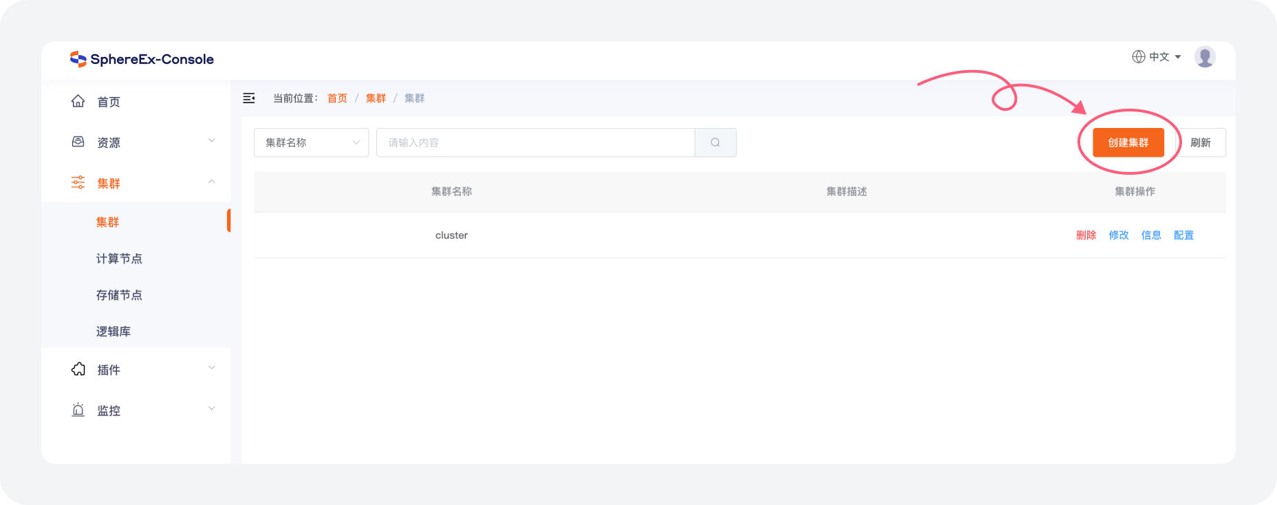 a. 在 集群 > 集群 菜单中点击 创建集群 按钮。