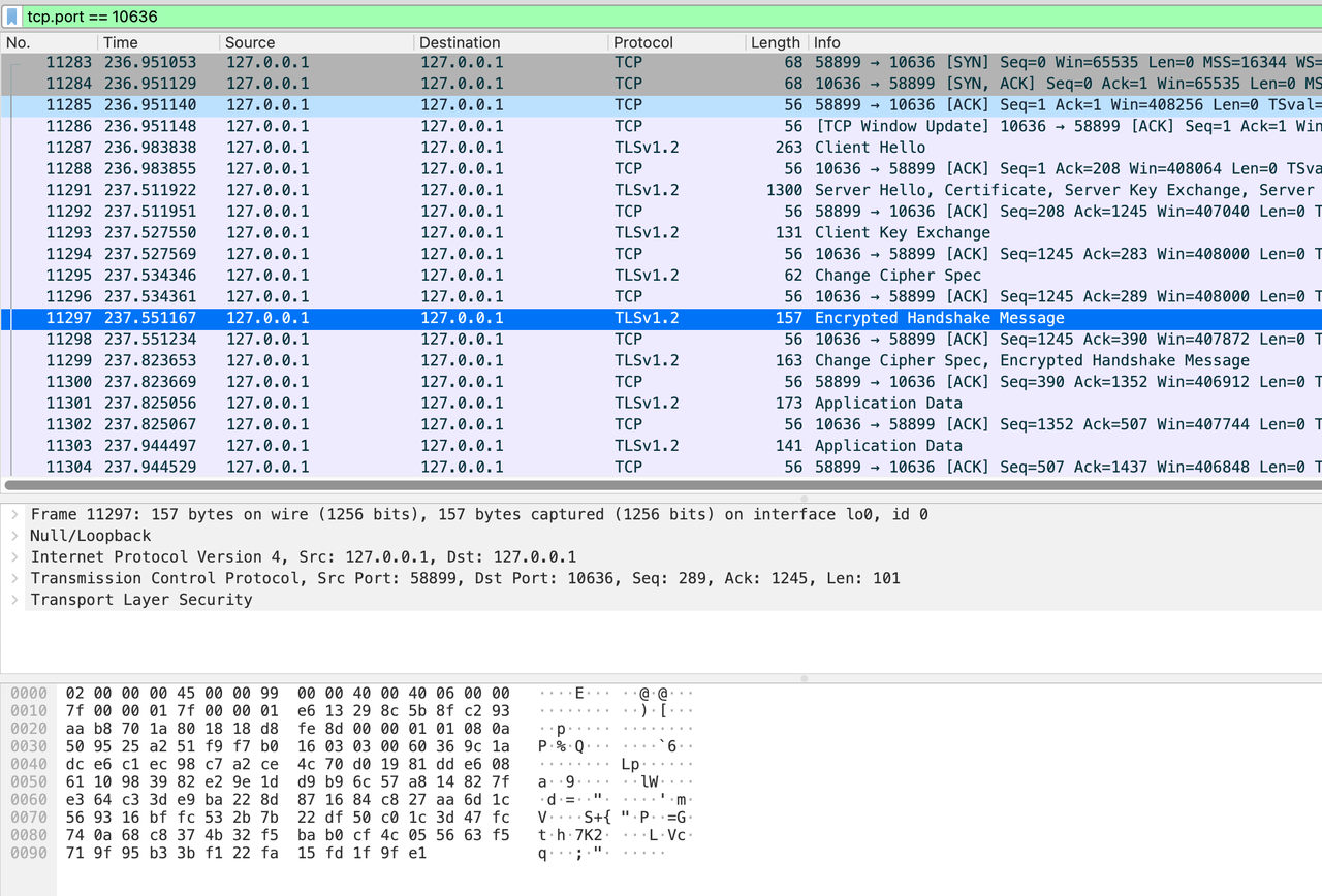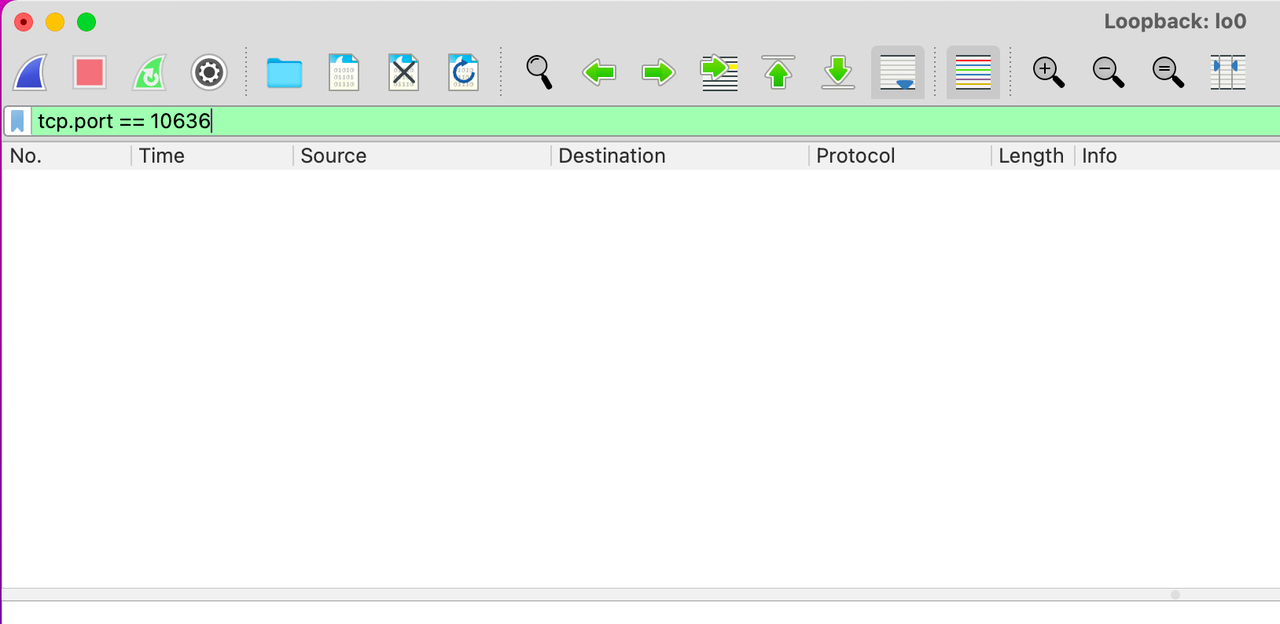 c. 启动 Wireshark,开始抓取 10636 端口的数据包